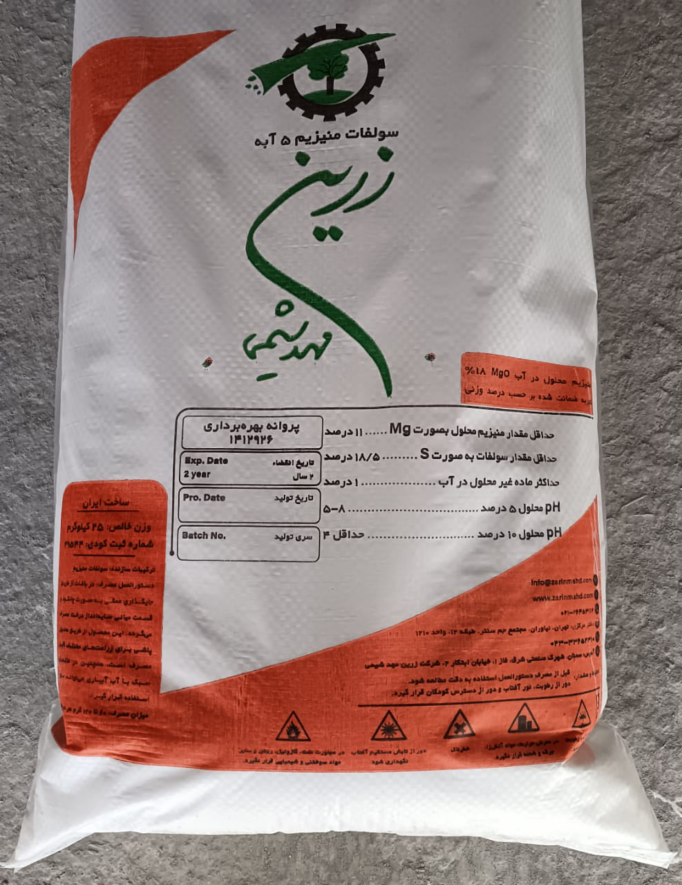 تولید و فروش منیزیم سولفات با بهترین کیفیت و نازلترین قیمت با امکان حمل و ارسال به سراسر ایران در مدت زمان کم از جمله اقداماتی است که شرکت در راستای مشتری مداری به کار گرفته است. کیفیت عالى محصولات ما را تجربه كنید و همراه با ما کیفیت تولیدات صنعتى و پروژه های خود را به سطح بالاترى ببرید.
